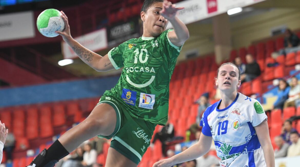 La gran actuación de Larissa de Silva, con ocho goles, compensan la temprana descalificación de María Zaldúa para dar al Rocasa Gran Canaria la cuarta victoria liguera (21-28).